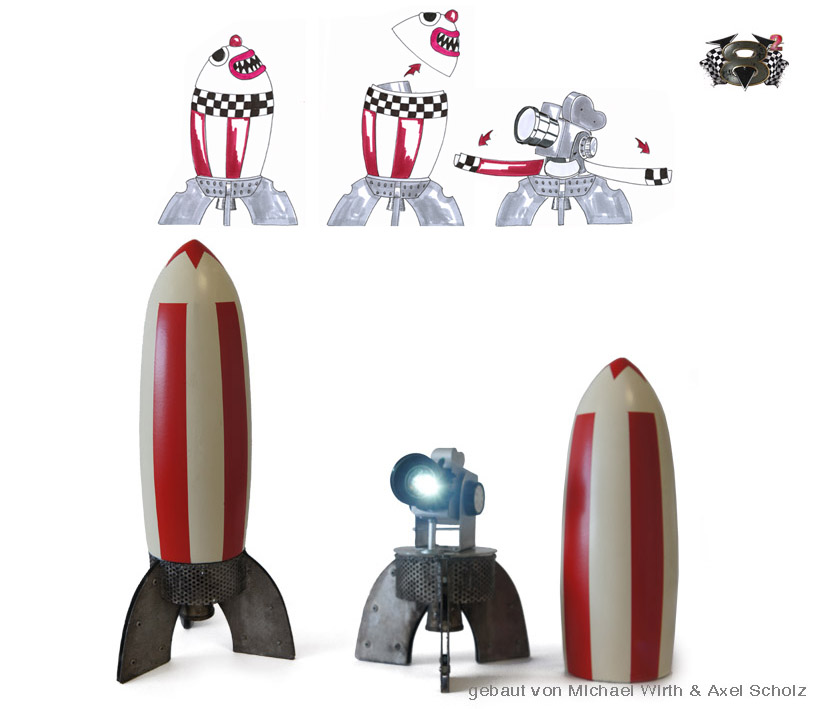 Anbei sind ein paar Beispiele von Requisiten, die ich entworfen habe und die dann gebaut wurden